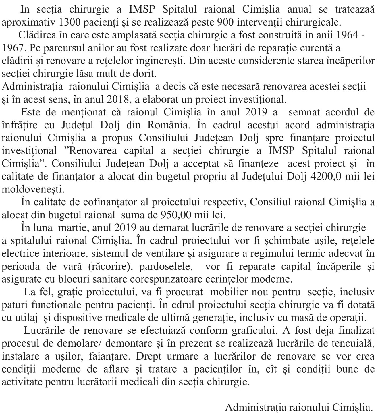 Au demarat lucrările de renovare a secției chirurgie a IMSP Spitalul raional Cimișlia.